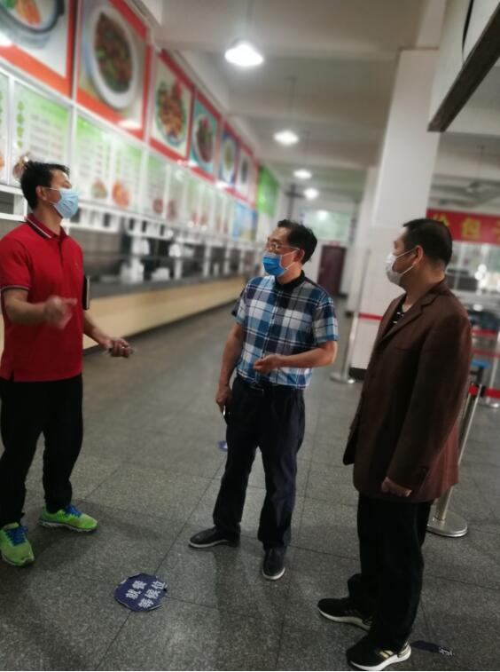 李高东一行从学院大门出发,对教室、教师办公室、学生宿舍、西苑餐厅等逐一进行检查,详细了解出入登记,学管干部校门口值班,学生返校流程,学生在校在随踪迹,住宿安排,离校报告,就餐环境等情况。他强调学生工作要细之又细,对学生的踪迹要全程掌握,一定要保障学生安全离校。