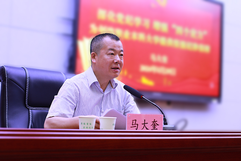党委书记马大奎作了党纪学习教育党课辅导报告。希望全校党员干部要强化认识,提高站位,充分认识党纪学习教育的重要性、必要性,增强工作的积极性和主动性;要把准目标明方向、明确任务抓重点、统筹协调抓质效、细化举措抓落实,切实增强开展党纪学习教育的精准性和有效性;要压实责任,增强政治定力坚定初心之路、强化纪律定力严明法纪之威、提升道德定力弘扬浩然之气、加固抵腐定力锻造清廉之身,推动党纪学习教育走深走实,为学校高质量发展提供坚强纪律保障。