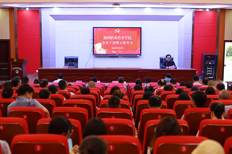 为深入推进党纪学习教育走深走实,充分发挥反面典型警示教育作用,切实筑牢全校党员干部拒腐防变的思想防线,5月29日下午,学校在学术报告厅召开党员干部警示教育会。校领导、中层干部、全校党员参加会议。