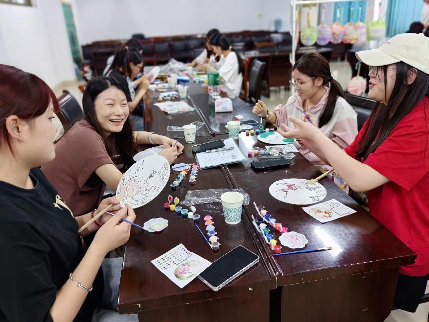 以漆为笔、以水为墨,活动伊始,一扇精彩的手作漆扇创作拉开了序幕。夜合庭前繁华盛,漂漆小扇匠人心,师生亲自体验手作漆扇的制作,在制作过程中,感受中国传统工艺之美。