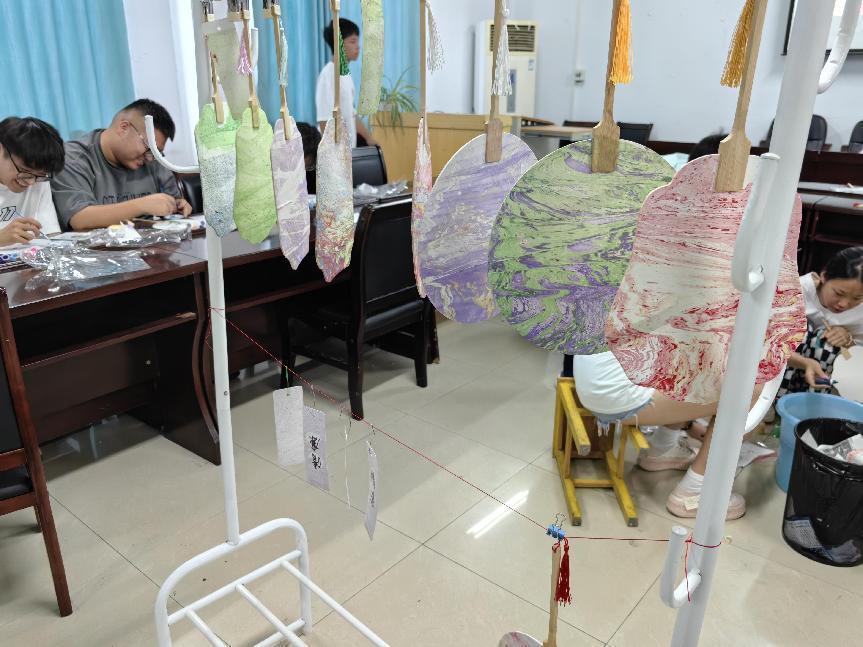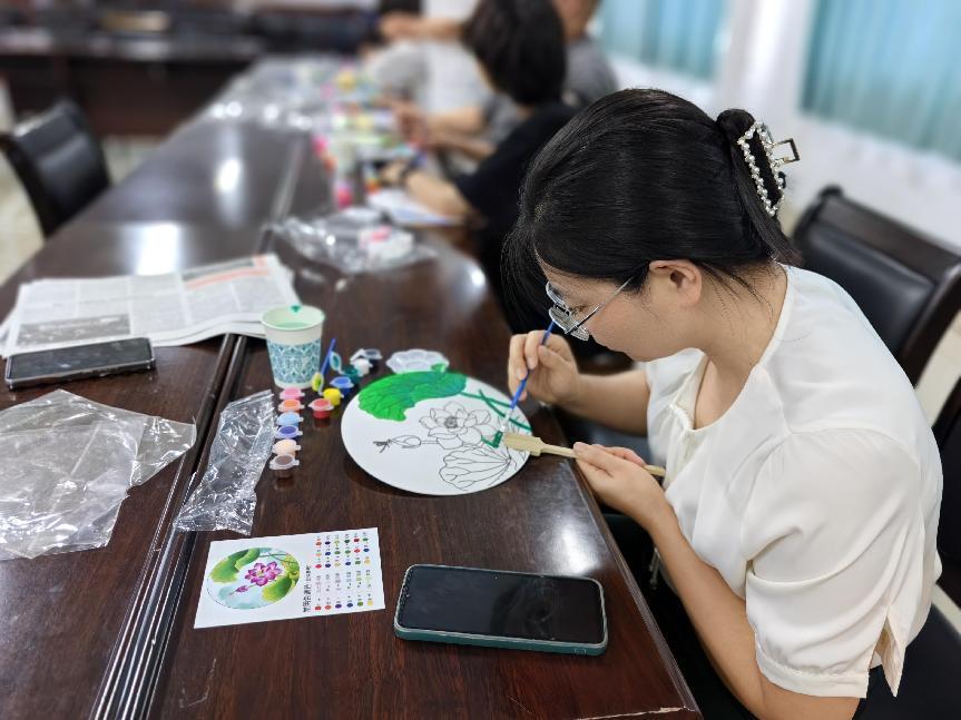 师生积极参与漆扇的手工制作中,一幅幅独具个性的漆扇作品及一幅幅精美的水彩清莲及梅兰竹菊作品跃然眼前,吸引了众多师生驻足观赏,这些作品不仅展示了书画艺术的魅力,更传递了清廉自律的正能量。同学们纷纷表示,通过参与活动,他们对清廉文化的内涵和价值有了更深刻的认识,也更加珍惜校园内的风清气正的环境。