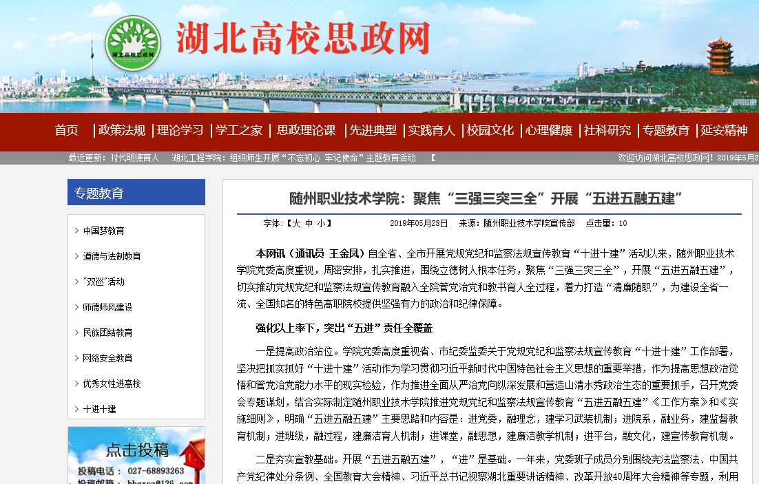 湖北高校思政网:随州职业技术学院聚焦“三强三突三全”开展“五进五融五建”