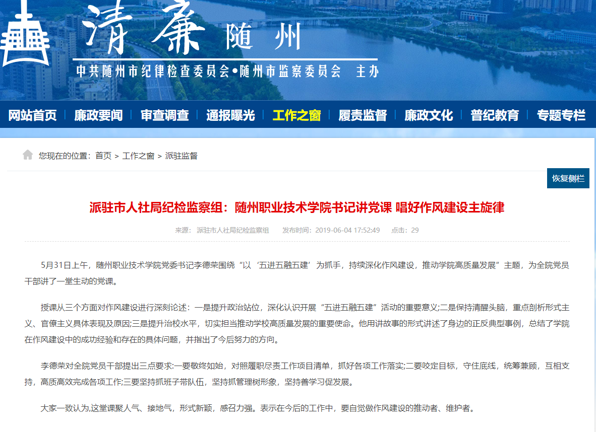 清廉随州网:随州职业技术学院讲党课 唱好作风建设主旋律