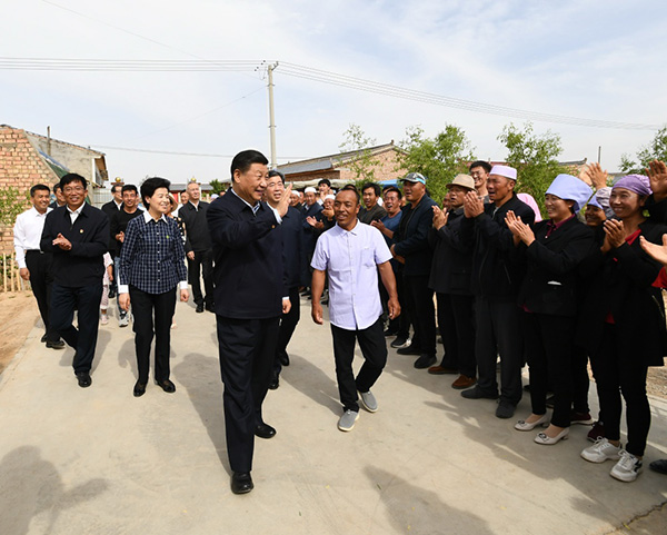 随后,习近平步行察看村容村貌。在回族村民刘克瑞家,他仔细看院落、客厅、卧室、厨房、牛棚,详细了解家庭就业、收入、看病、社保等情况。刘克瑞告诉总书记,家里的耕地流转了,还养了3头肉牛,儿子儿媳在附近纺织厂打工,2017年全家脱贫,生活越来越好,乡亲们打心底里感到党的政策好,真切感受到共产党亲。习近平询问刘克瑞老两口还有什么困难、对今后的日子有什么打算。习近平强调,乡亲们搬迁后,更好生活还在后头。希望乡亲们百尺竿头、更进一步,发挥自身积极性、主动性、创造性,用自己的双手创造更加美好的新生活。