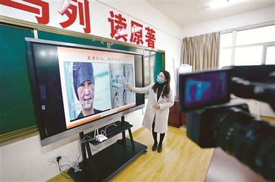 新冠肺炎疫情打断了原本的教学节奏,广大教育工作者迎难而上,支撑起世界上最大规模的在线教育,满足了全国2.8亿学生多样化的学习需求,也推进了教育教学方式革命性变革。这是3月17日,南昌豫章师范学院思政课教师通过互联网给学生们上课。新华社记者 周密 摄