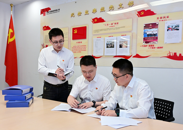 图为近日,中国大唐集团有限公司纪检监察组干部在梳理分析违反中央八项规定精神问题线索。 刘占虎 摄